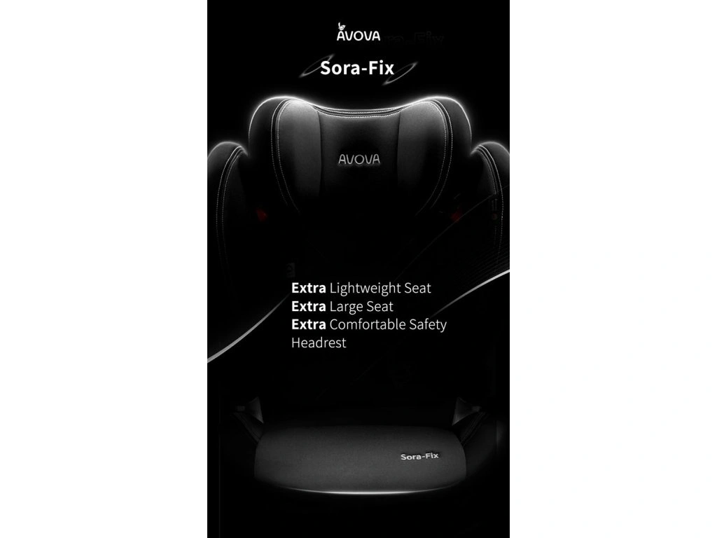 Az Avova SORA-FIX autósülés R-129 jóváhagyással rendelkezik, 100-150 cm magas, körülbelül 3-12 éves gyermekek számára. ISOFIX-szel csatlakoztatható menetiránynak megfelelően. A Reddot Design Award 2023 nyertese. Az ADAC teszt 100-150 cm kategória nyertese.