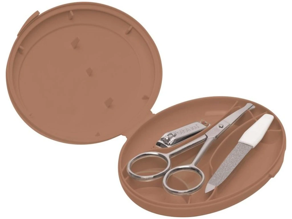 A Bebe-jou Baba manikűr szett egy 3 darabos rozsdamentes acél kozmetikai készlet praktikus, kompakt tokban, mely ideális a baba körmeinek ápolására.