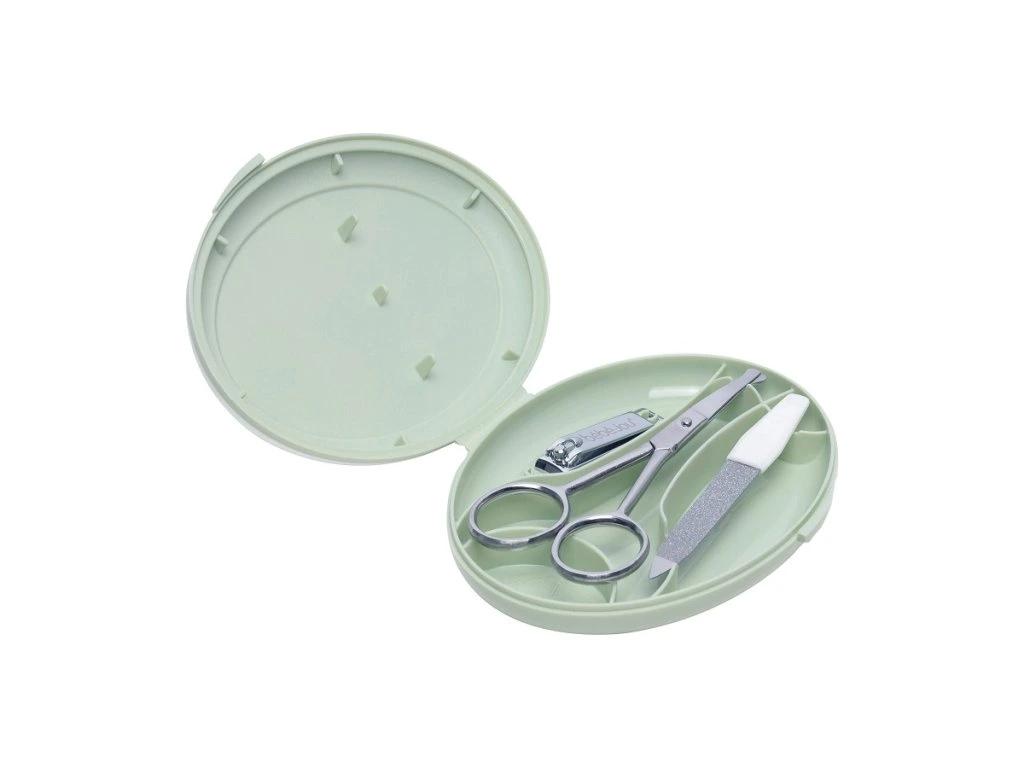 A Bebe-jou Baba manikűr szett egy 3 darabos rozsdamentes acél kozmetikai készlet praktikus, kompakt tokban, mely ideális a baba körmeinek ápolására.