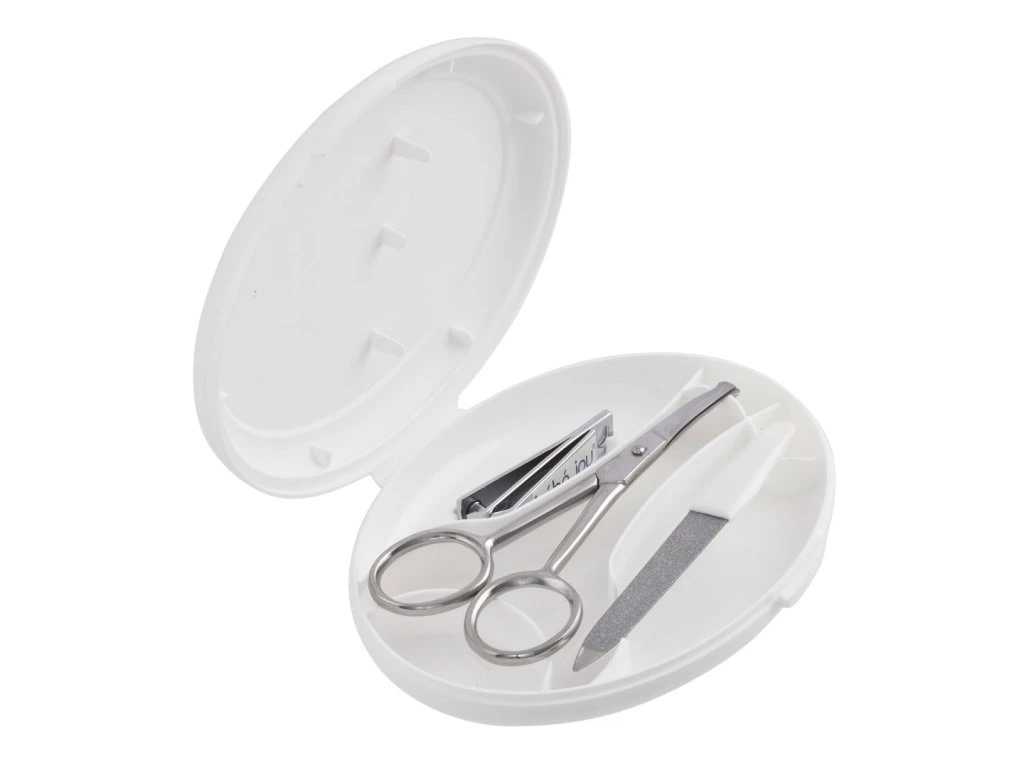A Bebe-jou Baba manikűr szett egy 3 darabos rozsdamentes acél kozmetikai készlet praktikus, kompakt tokban, mely ideális a baba körmeinek ápolására.