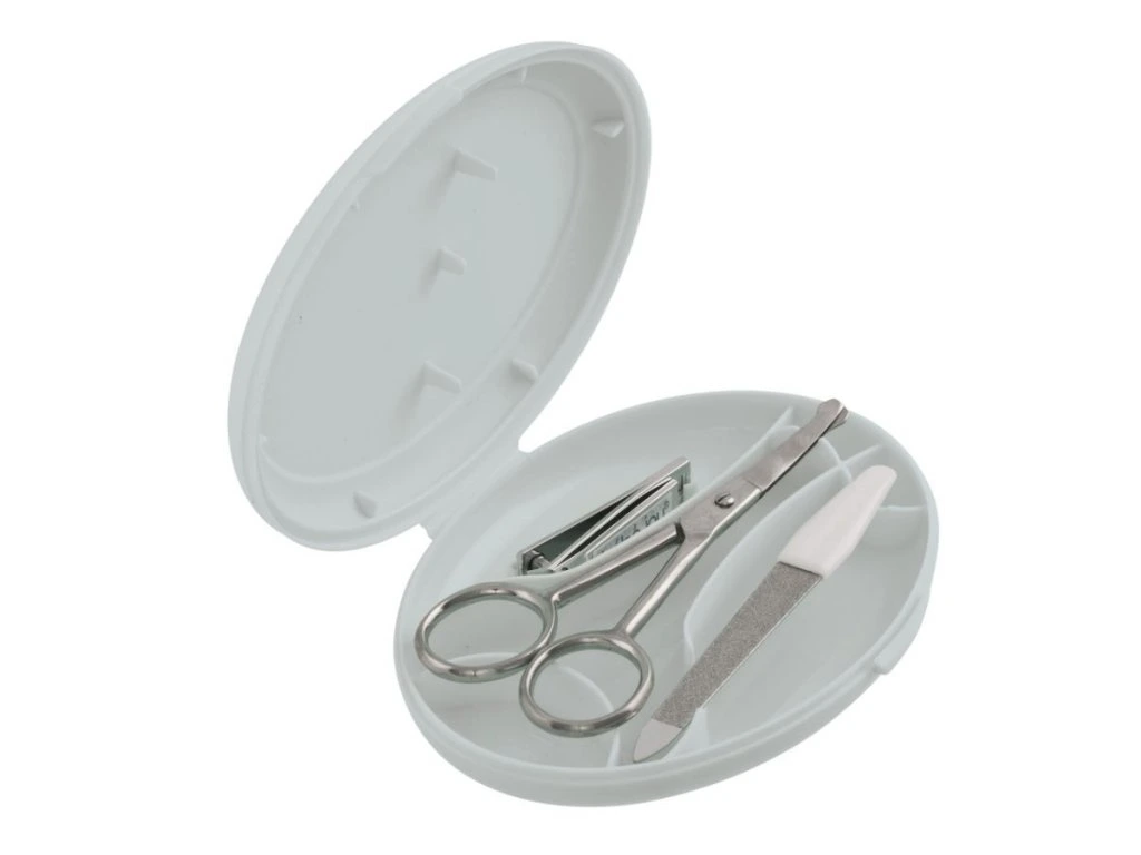 A Bebe-jou Baba manikűr szett egy 3 darabos rozsdamentes acél kozmetikai készlet praktikus, kompakt tokban, mely ideális a baba körmeinek ápolására.
