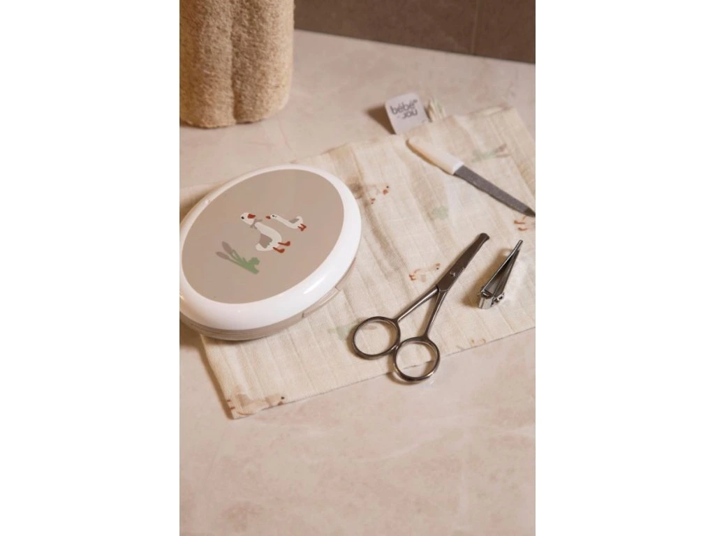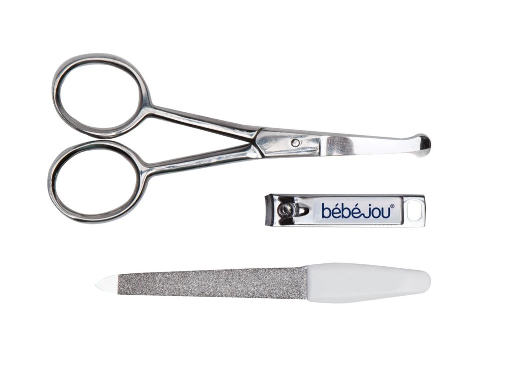 A Bebe-jou Baba manikűr szett egy 3 darabos rozsdamentes acél kozmetikai készlet praktikus, kompakt tokban, mely ideális a baba körmeinek ápolására.