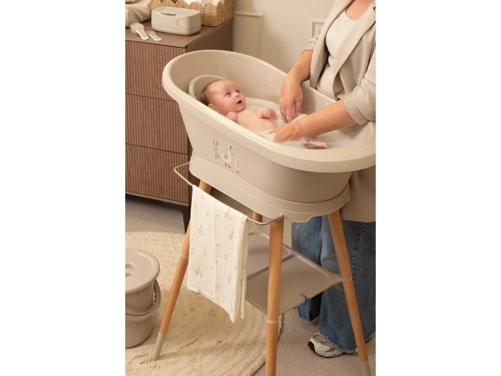 A baba fürdetése a kedvenc esti rituálék közé tartozik, melyen gyakran az egész család részt vesz. Az állványra rögzített babakád segítségével a fürdetés történhet egyenesen a gyerekszobában és a kicsit nem kell sehová sem hordani. Az állvány és a babakád így a szoba részévé válik és pozitívan befolyásolja a szobáról keltett benyomást. A Bébé-jou Sense állvány erősíti ezt a benyomást a műanyag és bükkfa kellemes kombinációjával. A babakád és tartozékai certifikált anyagokból készültek és színben tökéletesen kombinálhatók.