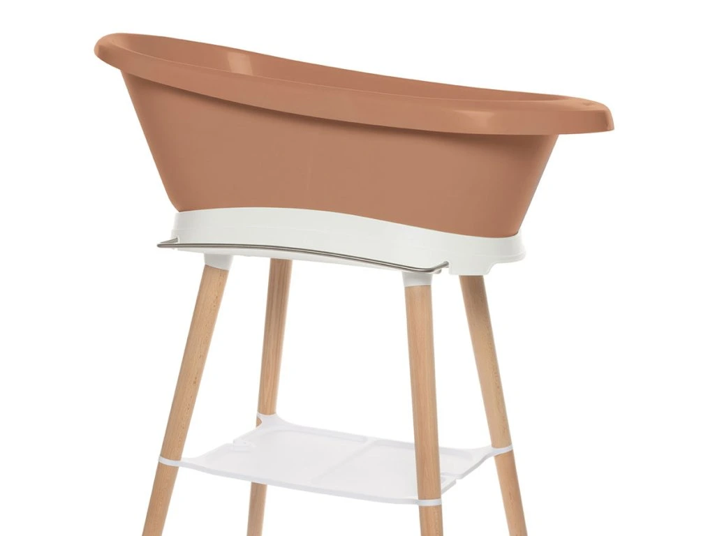 A Sense állvány lábai lakkozott bükkfából készültek, amely FSC certifikációval rendelkezik. Ennek köszönhetően modern, meleg benyomást kelt. Természetesen praktikus részekkel is el van látva, tartozéka a törülköző tartó, egy tágas műanyag polc, mely elegendő helyet biztosít a sampon, mosókendő és fürdőhab tárolására. Így kéznél van minden, amire szüksége lehet, hogy gyermekével kiélvezze a fürdés minden pillanatát. Az innovatív rögzítési rendszer biztosítja, hogy a babakád egyszerűen fel- és leszerelhető. Egy kattintás, és babája zavartalanul pancsolhat.