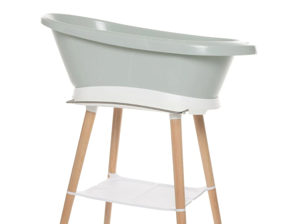 A Sense állvány lábai lakkozott bükkfából készültek, amely FSC certifikációval rendelkezik. Ennek köszönhetően modern, meleg benyomást kelt. Természetesen praktikus részekkel is el van látva, tartozéka a törülköző tartó, egy tágas műanyag polc, mely elegendő helyet biztosít a sampon, mosókendő és fürdőhab tárolására. Így kéznél van minden, amire szüksége lehet, hogy gyermekével kiélvezze a fürdés minden pillanatát. Az innovatív rögzítési rendszer biztosítja, hogy a babakád egyszerűen fel- és leszerelhető. Egy kattintás, és babája zavartalanul pancsolhat.