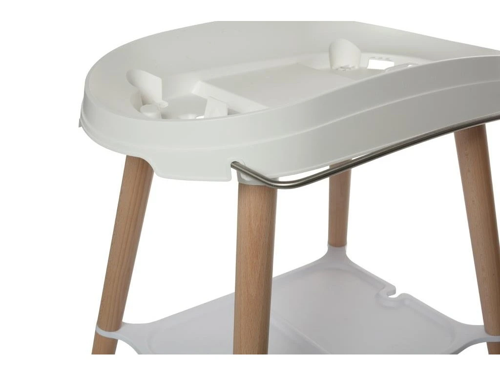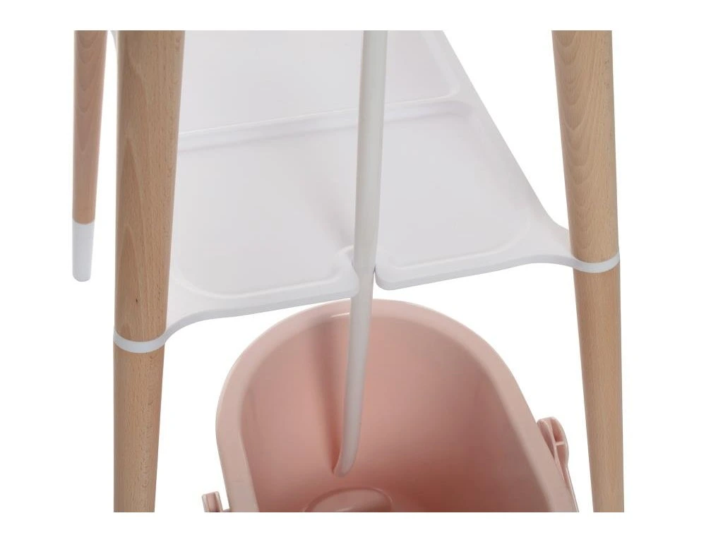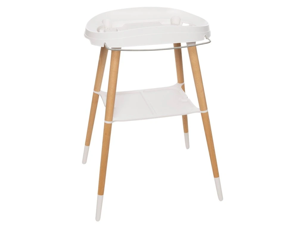 A nagyon stabil kád Sense állvány lábai lakkozott bükk fából készültek, FSC tanúsítvánnyal. Meleg, modern megjelenést kölcsönöz. Praktikus segédeszközökkel van felszerelve. A tágas műanyag polc elegendő helyet biztosít például sampon, haj, vizes játékok vagy hajolaj számára. Ez azt jelenti, hogy minden szükséges dolog kéznél van, hogy még a legkisebbekkel is élvezze a fürdetést . Az innovatív rögzítési rendszer biztosítja, hogy a kád könnyen rögzíthető az állványhoz és könnyen eltávolítható legyen. Kattintás után zavartalanul és biztonságban fürdessük a babát.