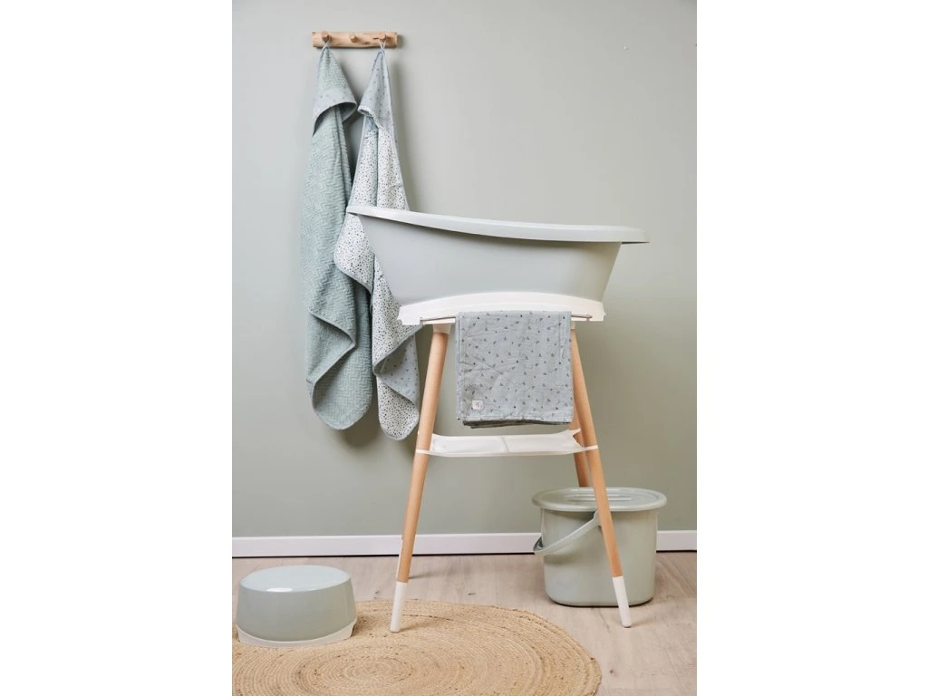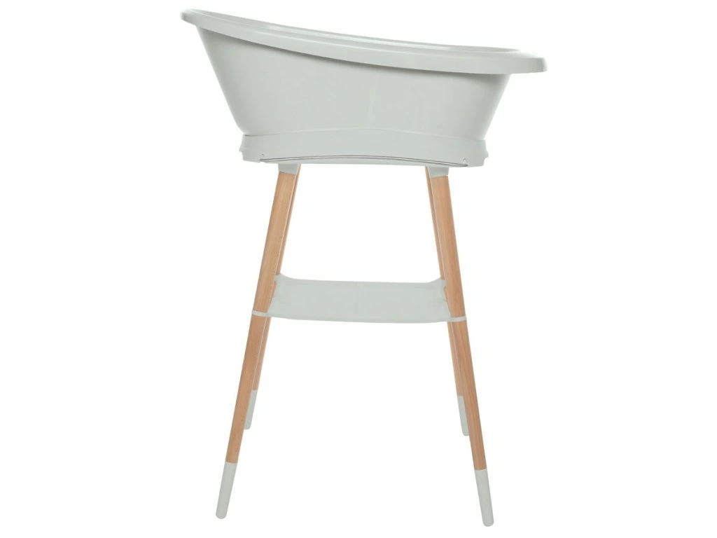 A nagyon stabil kád Sense állvány lábai lakkozott bükk fából készültek, FSC tanúsítvánnyal. Meleg, modern megjelenést kölcsönöz. Praktikus segédeszközökkel van felszerelve. A tágas műanyag polc elegendő helyet biztosít például sampon, haj, vizes játékok vagy hajolaj számára. Ez azt jelenti, hogy minden szükséges dolog kéznél van, hogy még a legkisebbekkel is élvezze a fürdetést . Az innovatív rögzítési rendszer biztosítja, hogy a kád könnyen rögzíthető az állványhoz és könnyen eltávolítható legyen. Kattintás után zavartalanul és biztonságban fürdessük a babát.