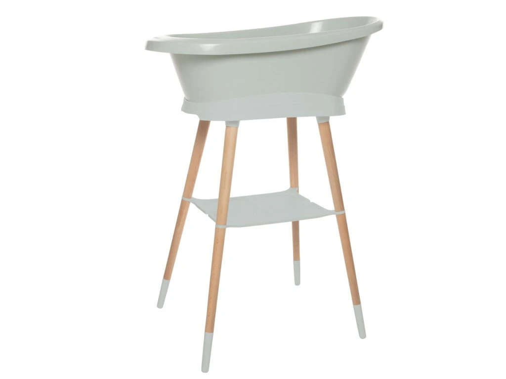 A baba fürdetése egy mindennapi rituális. Az állványon lévő fürdőkáddal lehetőség nyílik a gyerekjátékokkal való játékra és a babat bárhol lehet furdetni . Az állvánnyal ellátott kád ezután addig marad a szobában , ameddig csak akarja, és a dizajnja hatással lesz a helyiségben lévő kornyezetre . A Bébé-Jou Sense fürdőkád dizájnállványa ezt a koncepciót demonstrálja, a műanyag és a bükkfa lábak észrevehető kombinációjával.