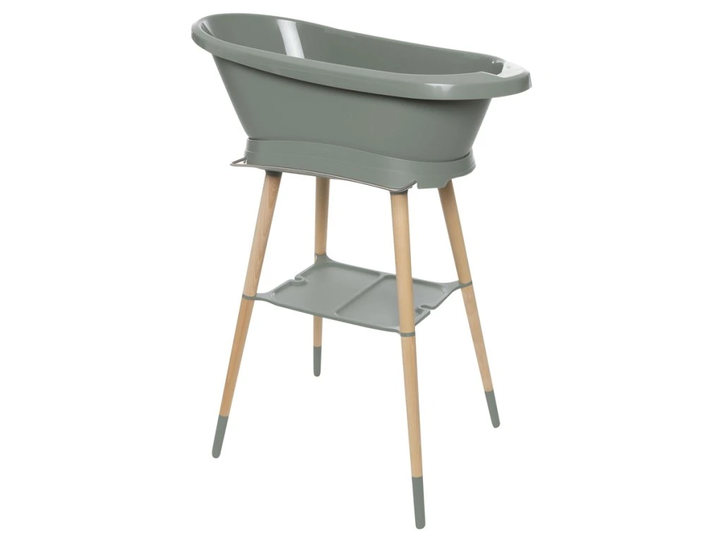 A baba fürdetése egy mindennapi rituális. Az állványon lévő fürdőkáddal lehetőség nyílik a gyerekjátékokkal való játékra és a babat bárhol lehet furdetni . Az állvánnyal ellátott kád ezután addig marad a szobában, ameddig csak akarja, és a dizajnja hatással lesz a helyiségben lévő kornyezetre . A Bébé-Jou Sense fürdőkád dizájnállványa ezt a koncepciót demonstrálja, a műanyag és a bükkfa lábak észrevehető kombinációjával.