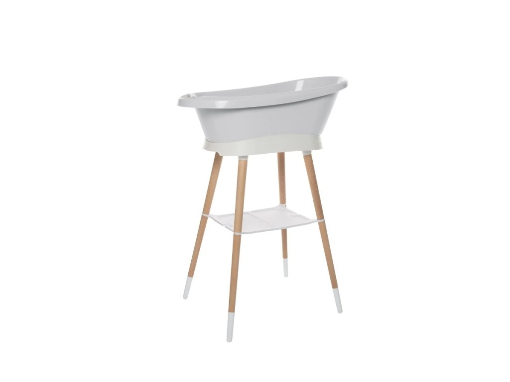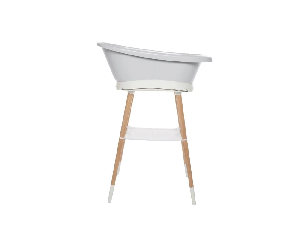 A nagyon stabil kád Sense állvány lábai lakkozott bükk fából készültek, FSC tanúsítvánnyal. Meleg, modern megjelenést kölcsönöz. Praktikus segédeszközökkel van felszerelve. A tágas műanyag polc elegendő helyet biztosít például sampon, haj, vizes játékok vagy hajolaj számára. Ez azt jelenti, hogy minden szükséges dolog kéznél van, hogy még a legkisebbekkel is élvezze a fürdetést . Az innovatív rögzítési rendszer biztosítja, hogy a kád könnyen rögzíthető az állványhoz és könnyen eltávolítható legyen. Kattintás után zavartalanul és biztonságban fürdessük a babát.