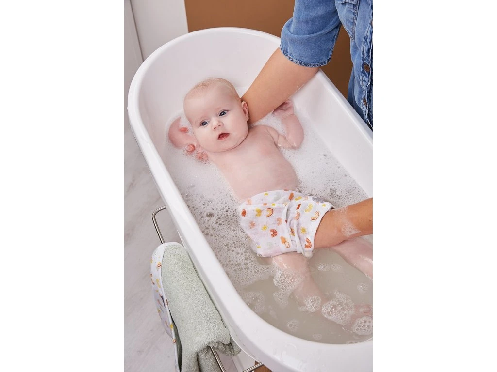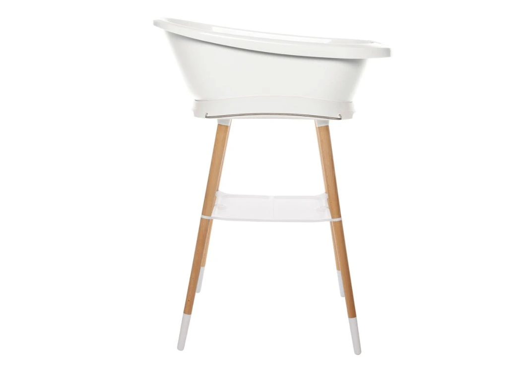 A nagyon stabil kád Sense állvány lábai lakkozott bükk fából készültek, FSC tanúsítvánnyal. Meleg, modern megjelenést kölcsönöz. Praktikus segédeszközökkel van felszerelve. A tágas műanyag polc elegendő helyet biztosít például sampon, haj, vizes játékok vagy hajolaj számára. Ez azt jelenti, hogy minden szükséges dolog kéznél van, hogy még a legkisebbekkel is élvezze a fürdetést . Az innovatív rögzítési rendszer biztosítja, hogy a kád könnyen rögzíthető az állványhoz és könnyen eltávolítható legyen. Kattintás után zavartalanul és biztonságban fürdessük a babát.