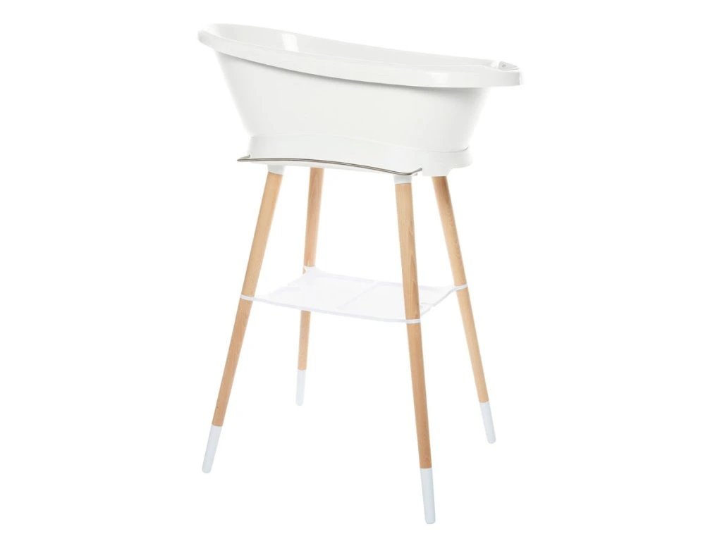 A baba fürdetése egy mindennapi rituális. Az állványon lévő fürdőkáddal lehetőség nyílik a gyerekjátékokkal való játékra és a babat bárhol lehet furdetni . Az állvánnyal ellátott kád ezután addig marad a szobában, ameddig csak akarja, és a dizajnja hatással lesz a helyiségben lévő kornyezetre . A Bébé-Jou Sense fürdőkád dizájnállványa ezt a koncepciót demonstrálja, a műanyag és a bükkfa lábak észrevehető kombinációjával.