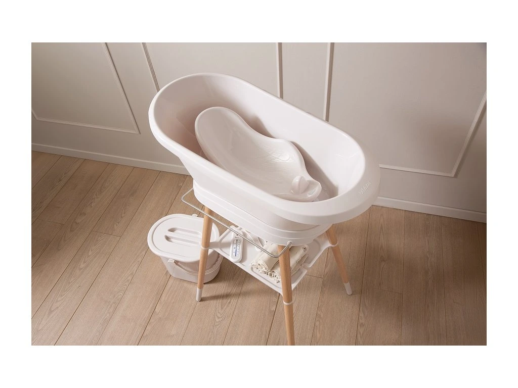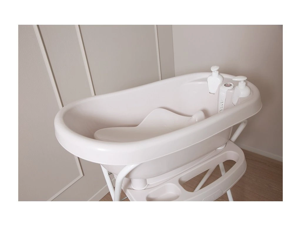 Születéstől 8 hónapos korig alkalmas. Az ergonomikus kialakítása megtámasztja a kicsit, amivel megkönnyíti a szülőknek a baba tartását fürdés közben. Tartozik hozzá rögzítő tapadókorong is. A Bebe-jou babatartó kádban és thermo kádban is használható, beleteheti viszont klasszikus nagy kádba is, vagy akár az utakra is elkísérheti.