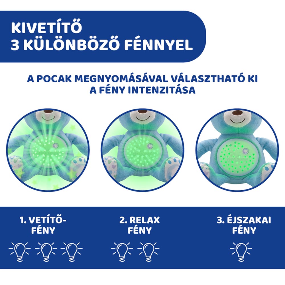 Chicco Baby Bear plüss maci projektorvetítö és éjszakai fény, Kék