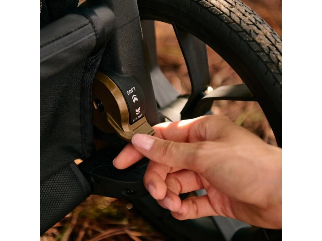 1,5 kg-mal könnyebb APTICA XT alváz adaptív felfügesztéssel és állítható rugózással, ideális városban és terepre is, új még nagyobb kerekekkel és jobb irányíthatósággal az akadályok leküzdésekor