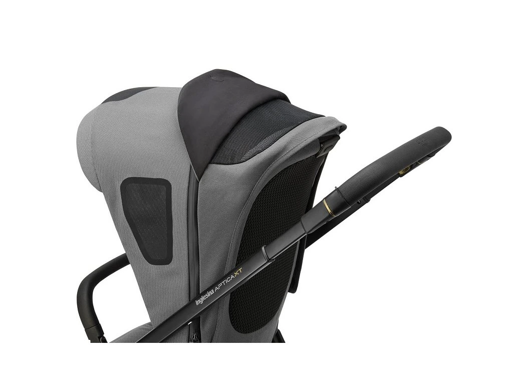 Az új Aptica XT kombinált babakocsi a következőkből áll: tágas XXL mózeskosár 5 szellőző ablakkal, Welcome PadTM matrac, Stand UpTM állvány, All Season sportülés lábzsákkal, kosár, pohártartó és az új adaptív felfügesztéssel rendelkező Aptica XT alváz.