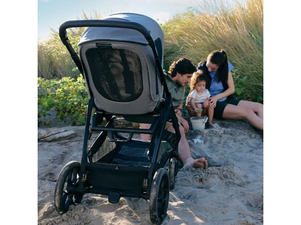 Az új Aptica XT kombinált babakocsi adaptív felfüggesztéssel, mózeskosárral 5 szellőző ablakkal és új, 1,5 kg-mal könnyebb alvázzal, nagy kerekekkel és a DARWIN RECLINE dönthető hordozóval.
